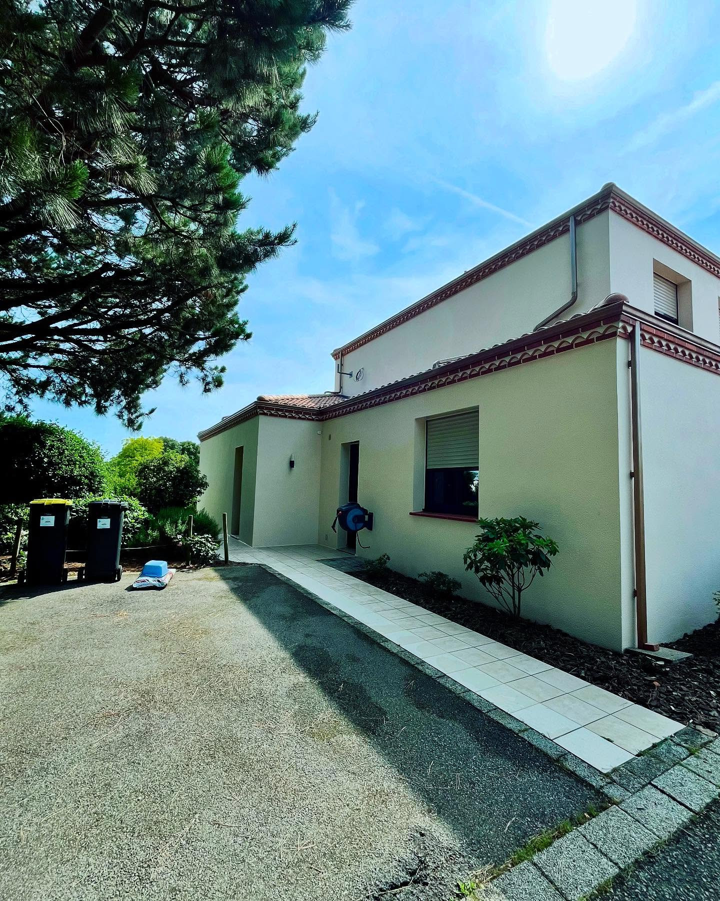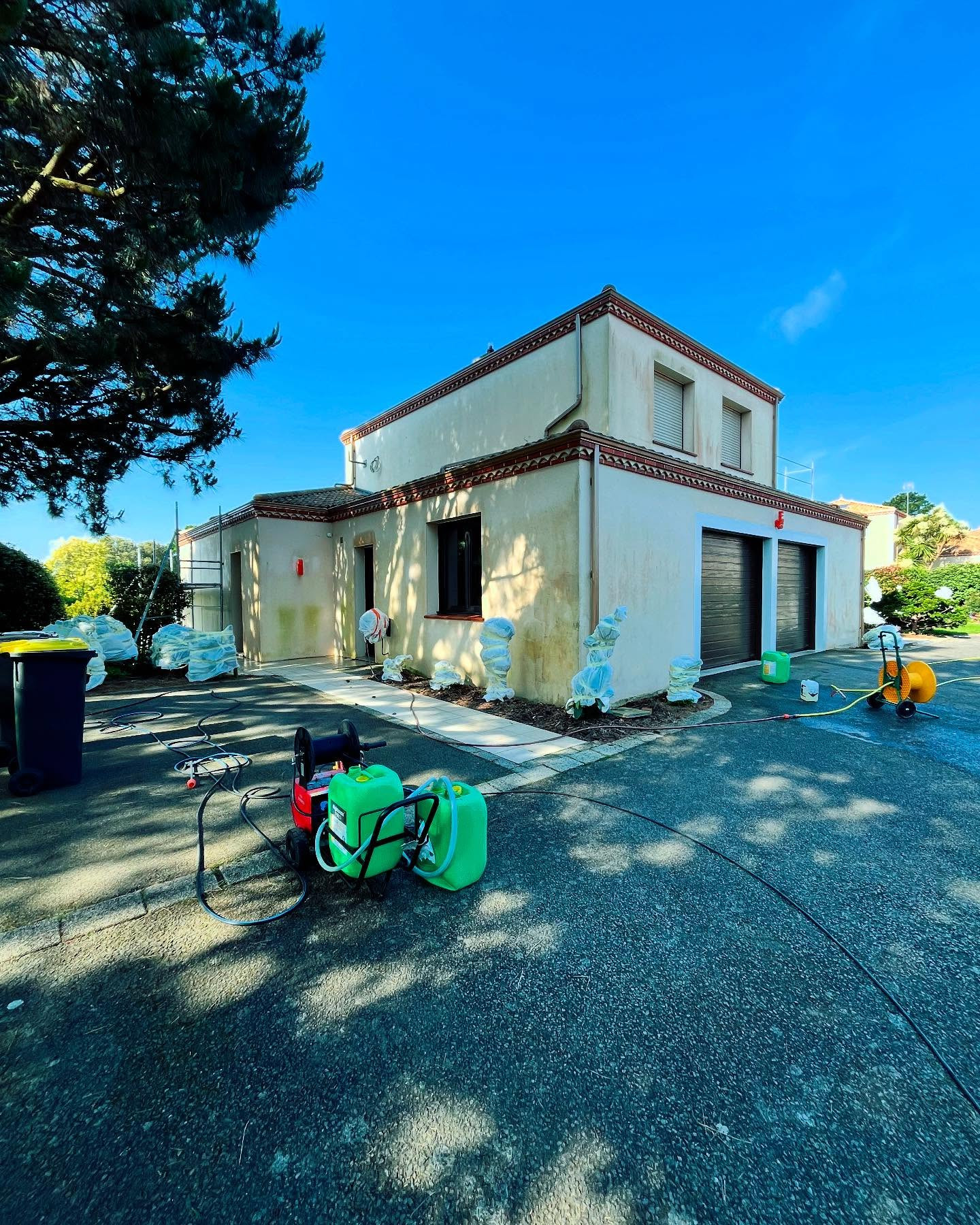 Dans le cadre de la rénovation de cette villa a Pornic, notre équipe a mis en œuvre deux systèmes de revêtement adaptés aux contraintes du littoral : un traitement de façade en D3 semi-épais et un D2 film mince sur les entourages et jardinières.